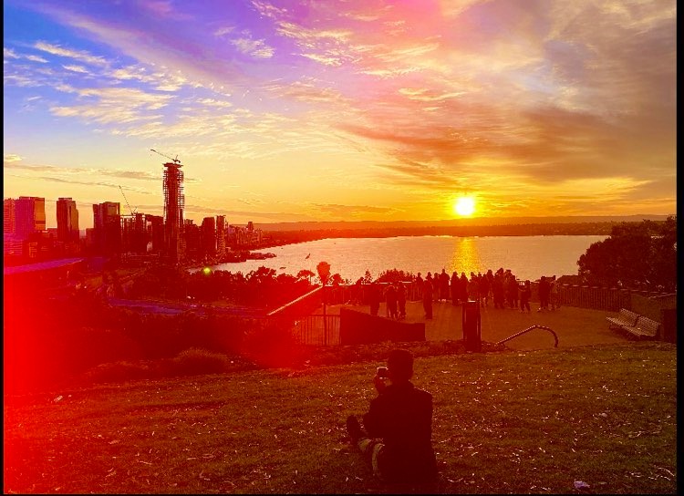 Fraser Avenue was the main road that led into Kings Park from the city. It was a long, straight road and from the park’s entrance conveyed a sense of beauty and elegance due the procession of lemon-scented eucalyptus trees that flanked it and rose high towards the sky. I had reached there a little after five (maybe about a quarter-past). It was light and the park was busy. There were cyclists, runners, dog walkers. The morning bus – the 935 from the park to Belmont Forum – was already operating, moving along out of the park towards the New Year. I made my way towards a slope of green grass, Mount Eliza Range, that faced east and out over the city. There were a lot of people already there before me (more than I had expected). They sat on the grass in groups as friends and family. Some leant against their parked cars. Others just stood between the trees facing the coming year. All waiting.