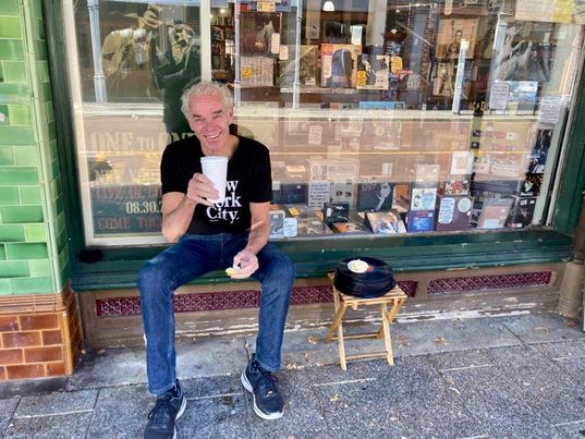 The record shop began to play The Beatles. Sergeant Pepper’s Lonely Heart Club. After the eponymous track opened, the sounds of ‘With a Little Help From My Friends’ filled the air – and as the chorus tells the whole of High Street how to get high with a little help from our friends, an old man with a bulky, blue backpack appears from nowhere and begins to dance across the pavement, zig-zagging in fleet-footed fox-trots.