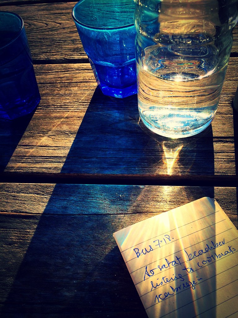 This is all I have today – ten minutes here at the cafe. This is all I have. And this is enough. This will work. With a flat pavement beneath your feet and the sun on your face. This is the place to be: sunshine on a wooden table, a coffee on its way and a ticket to ride. Writing on a wooden table, watching people passing by, blessed by the freedom of an empty page. Casting aside the irritations of seeking out a perfect time and place to write; there are no conditions worth pursuing (all are either absent or elusive). We need nothing more than to enjoy this moment: watching ink flow.