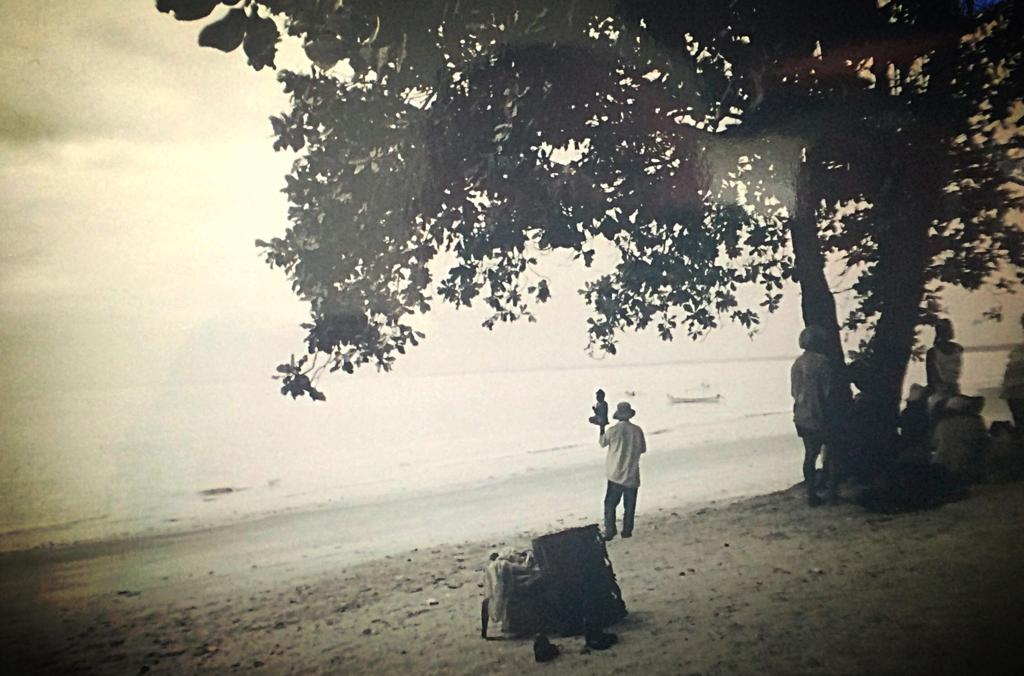 ‘Only my brother,’ he pointed to a smiling figure standing behind us up on the shore.