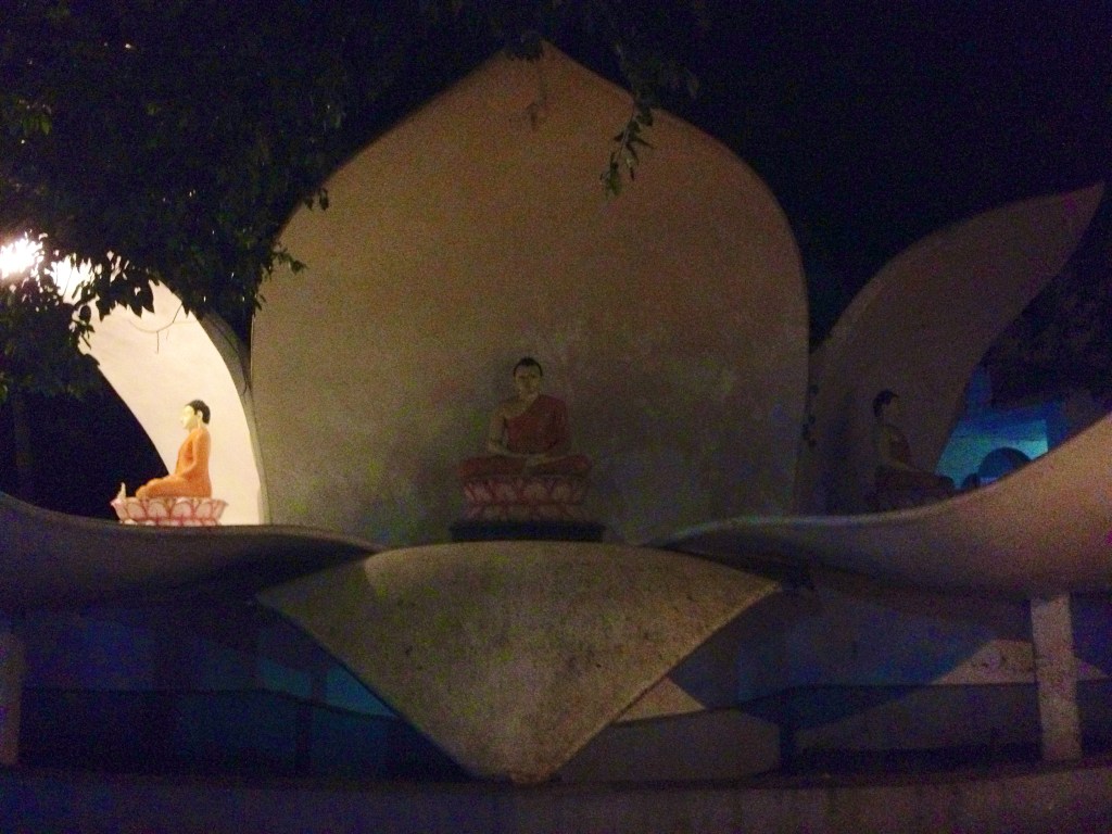 The journey back to Bentota was punctured with a stop at a roadside service station. We were here for about 30minutes. My driver, Dharme, and I shared a table. My body was tired. His phone rang several times. We ordered biryani and bottles of water. We sat and ate as we spoke about our lives. He told me about his family, his children and his hopes for their futures. As we finished our meal he rang his wife and told her that we would be returning in around an hour. The red LED clock in the car told the time of 7:33pm. Then once again we drove into the darkness. As always, whenever we passed a Buddhist temple or shrine on the final leg of the journey, Dharme continued to clasp his hands together in prayerful reverence (like a Namaste or wai gesture) and spoke something. We reached the outskirts of Bentota a little under an hour later, and as we approached familiar surroundings he asked me if I would like to visit the temple where he and his family prayed. It was late, and I agreed.
